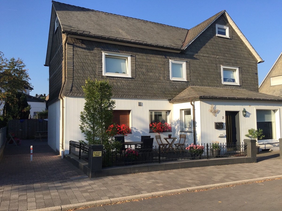 Nyrenovert og stilig ferieleilighet i gangavstand til sentrum i Winterberg (5 min) og til ulike skibakker og turstier (5 min) - avslapning og ro garantert. Leiligheten ligger i et rolig flerfamiliehus og har et boareal på ca 50 kvm, delt inn i kjøkken, bad, stue med sovesofa, soverom og korridor. Balkongen ved siden av stuen inviterer deg til å slappe av om sommeren.