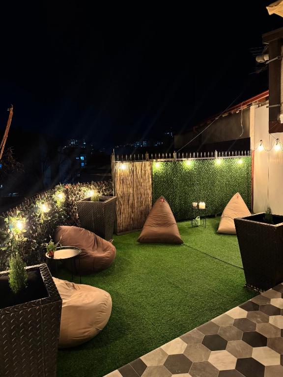 Urban Retreat with a Stunning Private Terrace Welcome to your chic getaway, perfectly located just behind UniverzalnaSala.Inside, you will find stylish living space with sleek black decor. The highlight? A massive 55m² private terrace, transformed into a serene outdoor lounge with bean bag seating, greenery, and magical night lighting ideal for relaxing under the stars. Whether for business or leisure, this apartment offers a unique blend of energy, comfort, and privacy in the heart of the city!