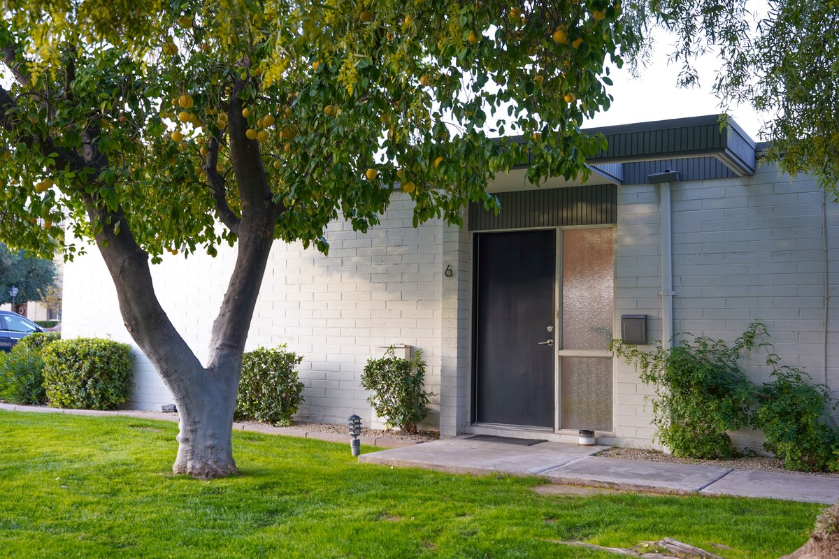 Denne vakkert ombygde leiligheten på ett nivå ligger bare noen minutters gange fra ASU Campus! Nyt en rekke unike butikker og barer i nærheten av ASU mens du bor med stil bare 9 minutter fra Sky Harbor International Airport. Få med deg en Spring Training-kamp på Tempe Diablo Stadium, Sloan Park eller Old Town Scottsdale (15 minutter unna). Ta en drink på legendariske Mill Avenue og utforsk nattelivet. Seks minutter med bil til Tempe St Luke's Hospital – helsepersonell er velkommen!