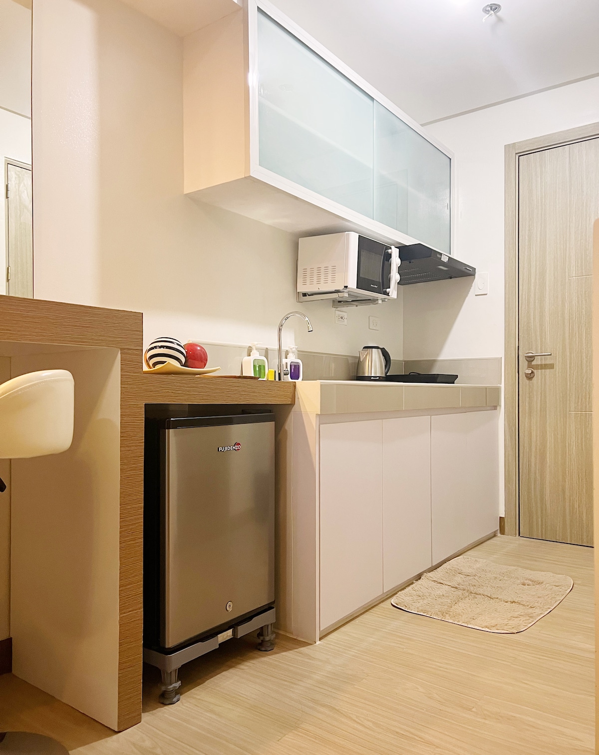 Velkommen til Shia Staycation! Et rolig og stilig tilfluktssted i Trees Residences. Minimalistisk design: rent, enkelt og elegant sted. Underholdningssenter: 55 tommers smart-TV med Netflix, karaoke og en PS4. Stemningsbelysning: flerfargede lys for enhver stemning. Komfortabel seng: dobbeltseng i hotellklasse for avslappende søvn. Moderne fasiliteter: trådløst nettverk med høy hastighet, fullt utstyrt kjøkken, skrivebord. Baderomsfasiliteter: varmtvannsbereder med bordplate. Rikelig med oppbevaring: romslig skap for organisering.