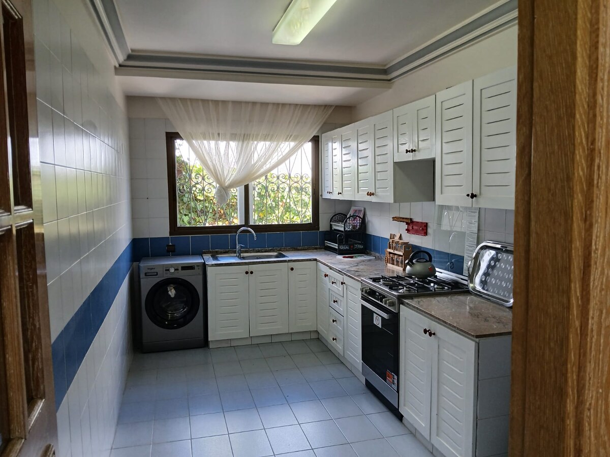 Vakker villa i andre linje vendt mot havet. - Klimaanlegg tilgjengelig - Beliggende i hjertet av det private og sikre komplekset Bahia Smir, er villaen fullt utstyrt, med direkte tilgang til stranden (2 minutter). Villaen består av tre store soverom, inkludert ett med terrasse med havutsikt. Et fullt møblert tak er også tilgjengelig. Kjøkkenet har en gårdsplass. Et personalrom er også tilgjengelig. Parkeringsplass tilgjengelig. / trådløst nettverk tilgjengelig.