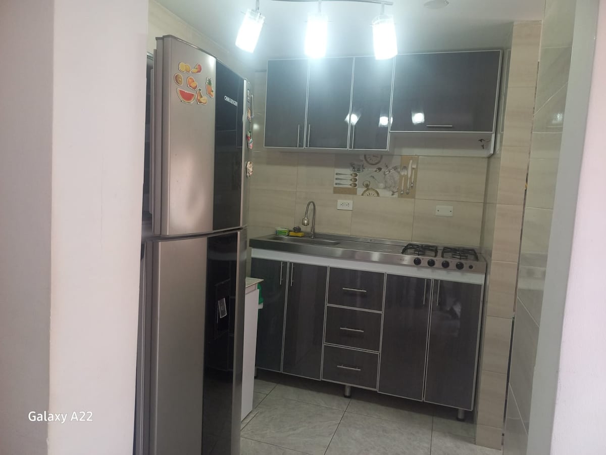 "Koselig leilighet i Soacha, ideell for et rolig opphold. Første uavhengige etasje, har to soverom (hovedsoverom med skap, sekundært med kommode), bad, kjøkken, terrasse, TV, Google TV og trådløst nettverk. Bare tre kvartaler unna Cardiovascular Hospital og i nærheten av kjøpesentre. I møte med en skøytebane er stedet komfortabelt, godt opplyst og utstyrt for et komfortabelt opphold."