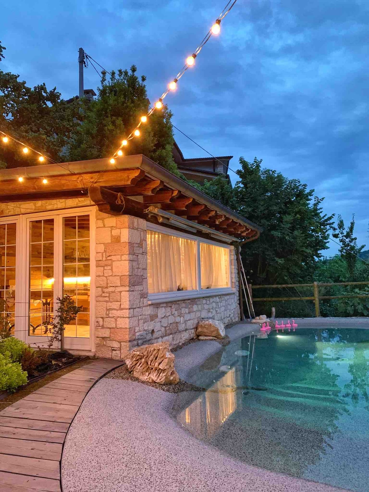 54 kvm leilighet med direkte tilgang til svømmebasseng og hage, med panoramautsikt over Gardasjøen. Superlativ og privat beliggenhet. Bruk av hagen og bassenget, privatliv og avslapning i de store uteområdene. Moderne konstruksjon fra 2015. Privat og uavhengig inngang, stor parkeringsplass. Streng rengjøring. Total privatliv. Små kjæledyr tillatt.