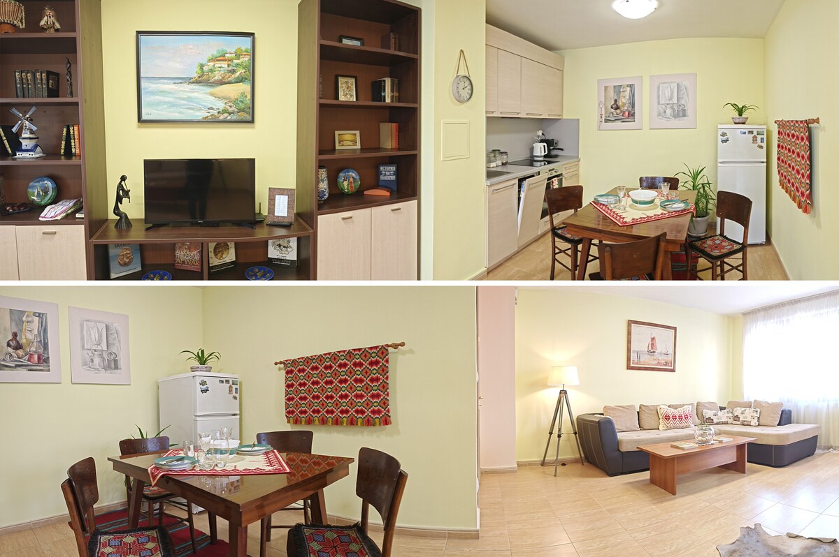 En egen leilighet i sentrum av Sofia. Ligger ti minutter fra National Palace of Culture og fra den mest populære gaten i byen – Vitosha. Det er også mange kollektivtransportlinjer i nærheten. Leiligheten ligger i fjerde etasje uten heis i bygningen. Vær også oppmerksom på at denne delen av sentrum i Sofia ligger i en «grønn sone», noe som gjør parkering i gatene vanskelig, så hvis du kommer med bil, må du finne en betalt parkeringsplass.