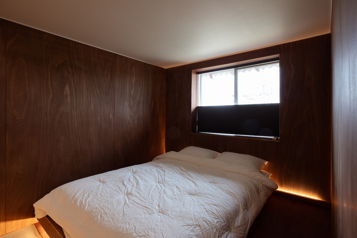 Kom ut av leiligheten i dag og bo på Cheongho House, en privat bolig som lukter av hav. Åpne porten og snu deg rundt for å komme inn på en liten gårdsplass. I gården består venstre side av hovedhuset (rom 3, toalett 2) med kjøkken og te salong, og høyre side består av annekset (rom 1, mini te salong 1, toalett 1) som er åpent bare når mer enn 6 personer gjør en reservasjon. Cheong Ho House er en enebolig som leies ut til bare ett team per dag. Tilbring natten i Sokcho mellom sporene av tiden og minnene om unge, med stilige møbler og belysning i den unike strukturen til Sokcho Guoc. Unn deg selv og ledsagerne dine litt moro mens du søker etter skjult moro og bruk i hver krik og krok. Det er en tesalong som en kafé hvor du kan samles og drikke te, og en landlig hage med kran. Cheongho-familien har reparert det gamle huset som ble brukt som et privat hjem i lang tid, så det er ikke noe sted utenfor eierens rekkevidde. Vi ser frem til å møte deg i Cheong Ho House.
