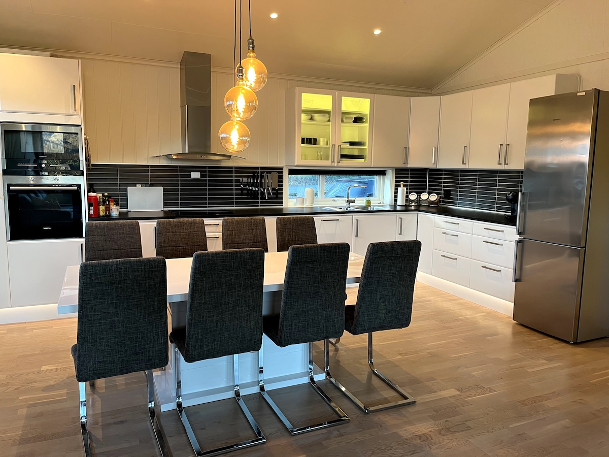 Stor hage, trampoline.Stor innegjerdet lekeplass. 100m fra butikk og badeplass med flytebrygge,rutsjebane, slengdisse, sandstrand. 17 min Flekkefjord sentrum.1 time fra sørlands-badet. 35 min fra Kvinabadet badeland, 20 min fra sogndalstrand. Wifi, Apple-tv 20flotte tur-områder,Bl.a Brufjell kjent for lakseelven i Åna-Sira. 5min til frisbee-golf og fotballbane «Hjem med en etasje», man har alt man trenger i 1.etg hvis rullestolbruker. Sengetøy kan bestilles via melding,for 100kr pr pers