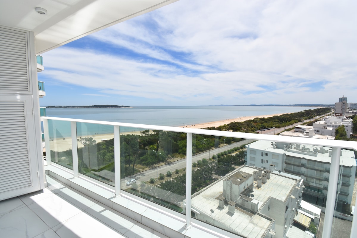 Fantastisk dupleksleilighet med den beste utsikten fra Punta Ballena. Privat terrasse med utemøbler og grillplass. Fullt møblert, inkluderer sengetøy og rengjøringstjeneste daglig. Design og fasiliteter i verdensklasse, inkludert direkte tilgang til svømmebasseng (tilgjengelig om sommeren), treningssenter, lounge og innendørs parkeringsplass. Privat sikkerhet døgnet rundt. Ved stranden 300 meter / 250 meter. Fantastisk sted for hele familien å slappe av eller for par.