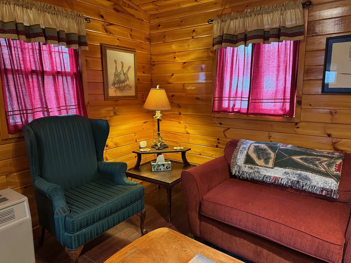 INGEN RENGJØRINGSGEBYR, INGENTING EKSTRA FOR DEG! Du finner denne fredelige, koselige hytta blant høye, vakre røde furutrær. Plassert i et rolig, privat samfunn i Eustis. Dette stedet er perfekt for en enslig person eller et par. Den koselige hytta ligger ved siden av hjemmet vårt, men er en egen frittstående enhet. Mye å tilby på et lite sted. Ute er det en gassgrill og en overbygd veranda med stoler å nyte i de varmere månedene. Sett deg ned og nyt de fredelige omgivelsene eller en god bok.