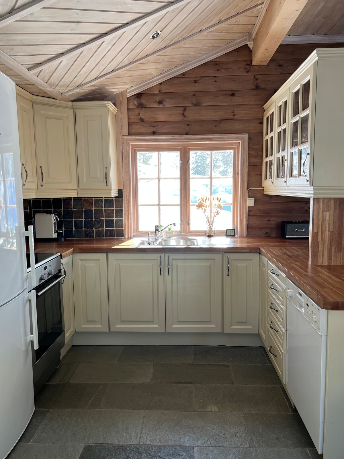 Beautifully situated log cabin 10-min drive from the center of Lillehammer. Short distance to the Birkebeineren Ski Stadium, which offers an extensive network of hiking trails and cross-country skiing tracks. 15-min drive to Nordseter, about 20 minutes to Sjusjøen, both with excellent trails for hiking and skiing. The ski jumping hill is 3-minute drive from the cabin and offers a great view. 5-min drive to grocery store. For alpine skiing, Hafjell is 25 min away, and Kvitfjell is about 1 hour.