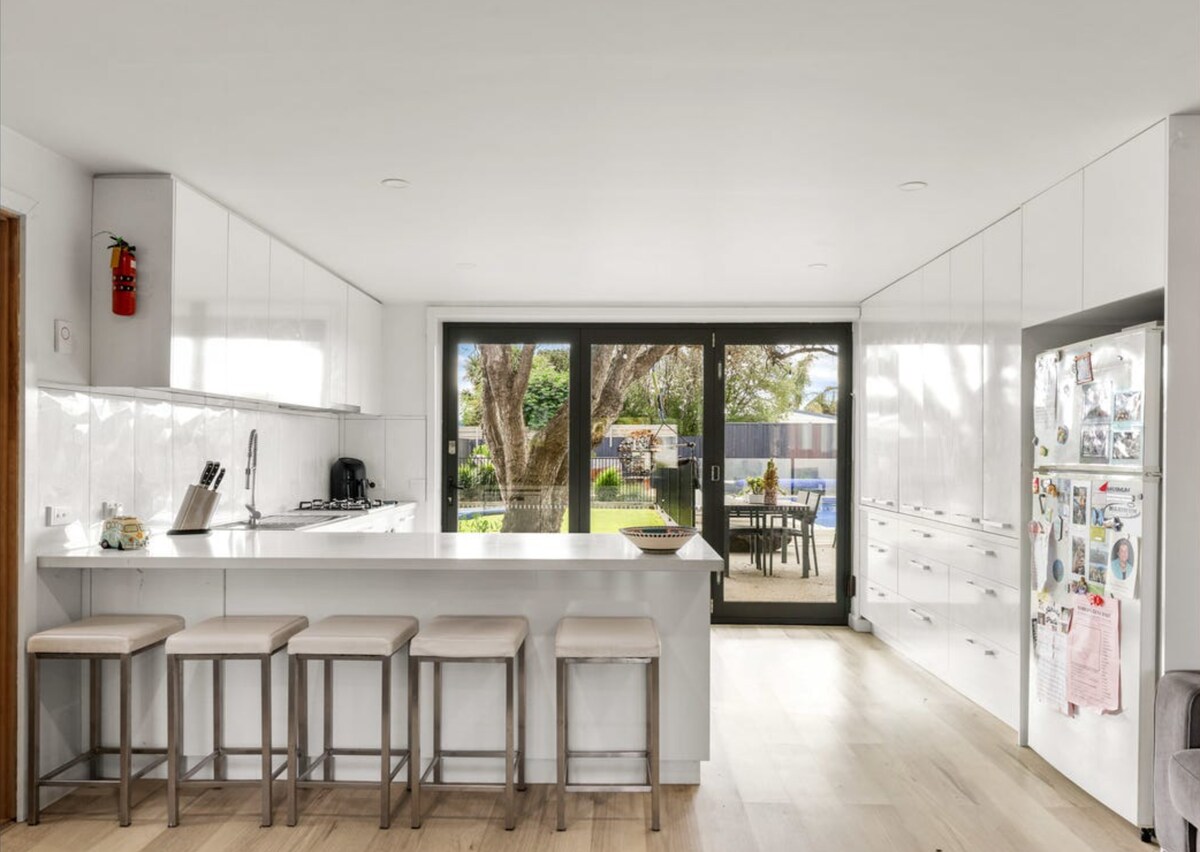⭐ Over 40 femstjerners anmeldelser! Hjemmet vårt ble tidligere administrert av en agent, men nå leier vi det ut direkte. Gjestene elsker den for komforten, renheten og de gjennomtenkte detaljene. Slapp av i den fredelige bakgården, slapp av i badstuen, eller nyt hjemmetrening og spill med barna. Gå til stranden og butikkene, utforsk Mornington-halvøya eller kos deg ved bålet – vi tar sikte på å gjøre hvert opphold helt spesielt.