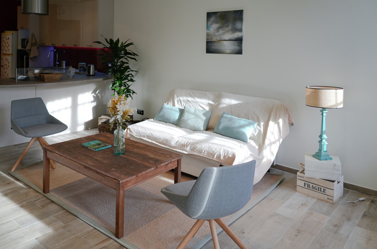 🌿 Stilfull vintage-leilighet med ett soverom i Soucieu-en-Jarrest! Egen terrasse og koselig sjarm. Bo i denne sjarmerende leiligheten på 40 m² med ett soverom, smakfullt innredet i en elegant vintagestil, ideell for en parferie eller en jobbreise. Nyt et koselig, rolig tilfluktssted med en privat terrasse og gratis parkering, kun 15 minutters gange fra sentrum og omgitt av natur.