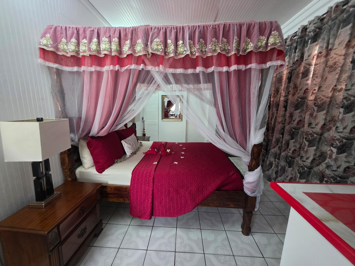 Denne nye og moderne leiligheten med ett soverom ligger i første etasje i et treetasjes hus som består av seks enheter. Denne leiligheten har en perfekt beliggenhet bare fem minutters gange eller to minutters kjøretur fra hjertet av Soufrière, og tilbyr både bekvemmelighet og komfort. Få enkel tilgang til alle basisartikler, inkludert banker, supermarkeder og kollektivtransport. For de som ønsker å utforske, er populære turistattraksjoner som Sulphur Springs, fosser og strender bare noen minutter unna.