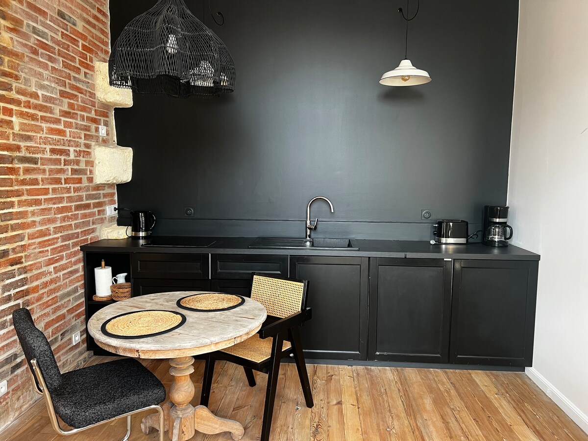 Studio på 19 m² som ligger på hagenivå i en privat villa. Den har egen inngang, en privat terrasse vendt sørover og tilgang til det oppvarmede svømmebassenget fra 1. mai til 15. september. Den har et fullt utstyrt kjøkken, en seng som kan gjøres om (160 x 200) med en spaltebunn, en 17 cm madrass og et bad med dusj, badekar, elektrisk håndkletørker og toalett. En sti fører deg gjennom sanddynen direkte til havet på to minutter. Sentrum ligger syv minutters gange unna.