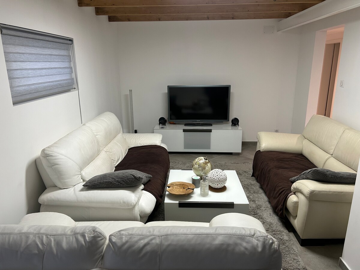 Velkommen til Soultz-Haut-Rhin, en sjarmerende liten alsatisk by som ligger ved foten av Vosges, mellom Colmar og Mulhouse. Her er alt på plass for et uforglemmelig opphold Etter Alsace-ferien kan du slappe av i et koselig hjem med boblebad og hjemmekino for kvelder med mye hygge. Ideelt for en romantisk helg, familieferie eller ferie med venner. Vi tar deg gjerne imot og gir deg råd, slik at oppholdet ditt i Alsace blir perfekt. 💌