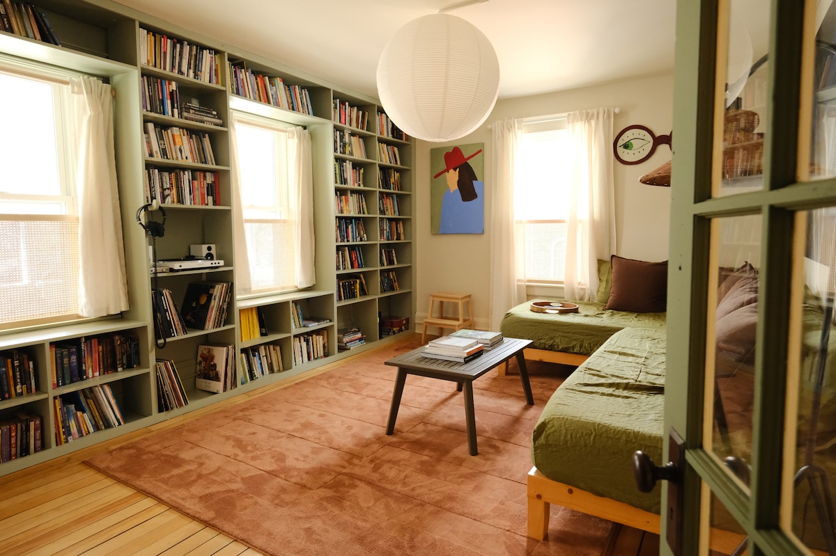 Besatt av vintage? Det er vi også! Bo rett over en av Burlingtons beste vintageklærbutikker i en 1960-tallsinspirert leilighet. Ikke bare er dette stedet herlig dekorert, men det ligger i det beste området Burlington har å by på! Du har en liten utsikt over Lake Champlain og en kort spasertur til alle de beste restaurantene og butikkene som Burlington har å tilby. Hvis du liker å utforske naturen, er vi noen skritt unna Burlingtons sykkelsti og gangavstand til mange sykkelutleiesteder.