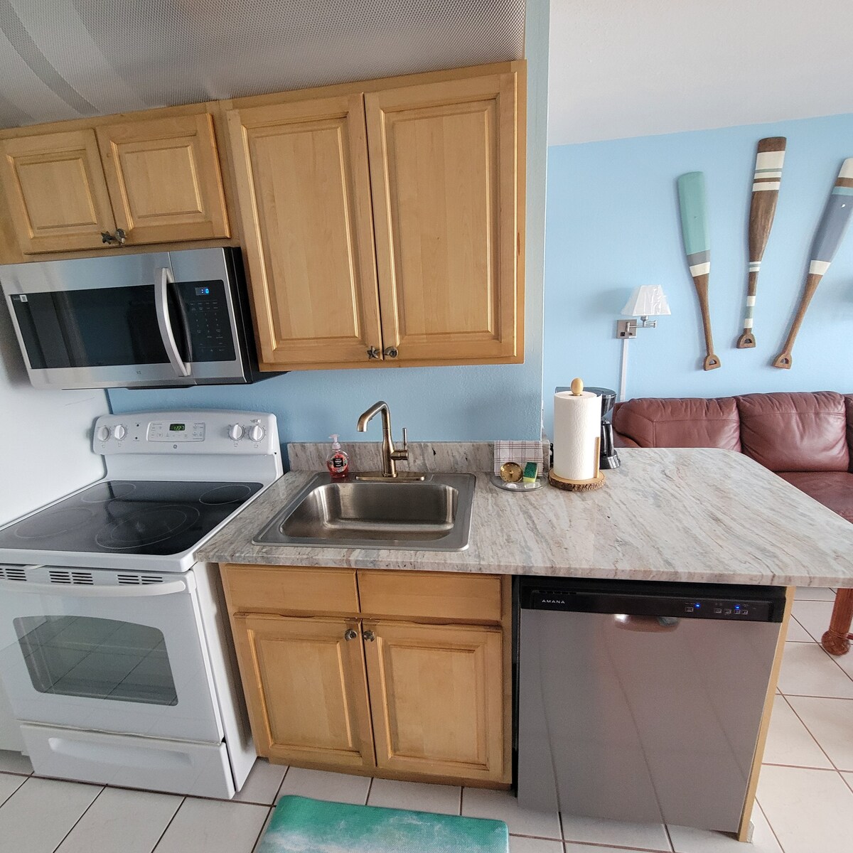 Slapp av med hele familien på dette fredelige stedet å bo. Direkte ved stranden. Fantastisk utsikt og lyden av bølger når du sover. Nyt soloppgangen fra din egen balkong. Nyt alle fasilitetene i Whitesurf Condominums, som ligger i gangavstand fra butikker og restauranter. Trådløst nettverk og spill er tilgjengelig. Vakkert renovert romslig leilighet med to soverom og to bad. Velutstyrt kjøkken. Vaskemaskin og tørketrommel. Trådløst nettverk med høy hastighet. Strandstoler og boogieboards tilbys. Pack n play følger med.
