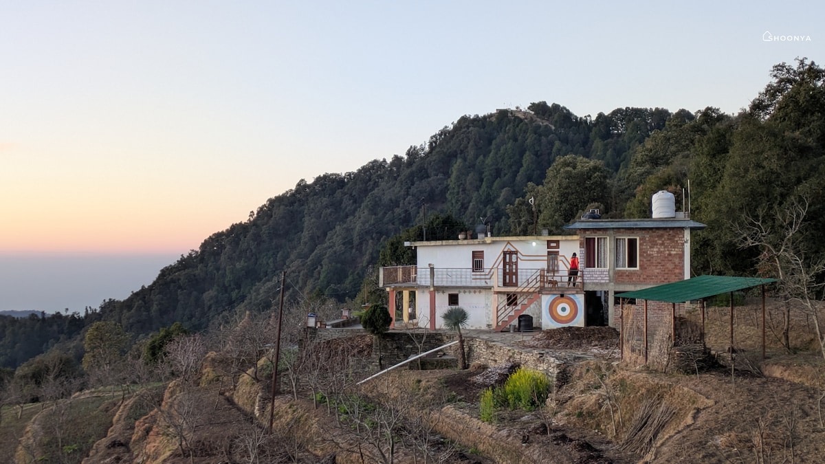 Opplev luksus midt i naturen på denne fantastiske villaen med to soverom i Darima Colony, Mukteshwar, Uttarakhand. Våkn opp til fantastisk 360-graders panoramautsikt over åsene og Mukteshwar-dalen rett fra balkongen din. Opplev magiske utsikter over soloppgang og solnedgang som farger himmelen i livlige nyanser. Denne moderne villaen er omgitt av en privat frukthage med fersken-, plomme- og aprikostrær, og den er et perfekt, rolig tilfluktssted for naturelskere, par og små familier.