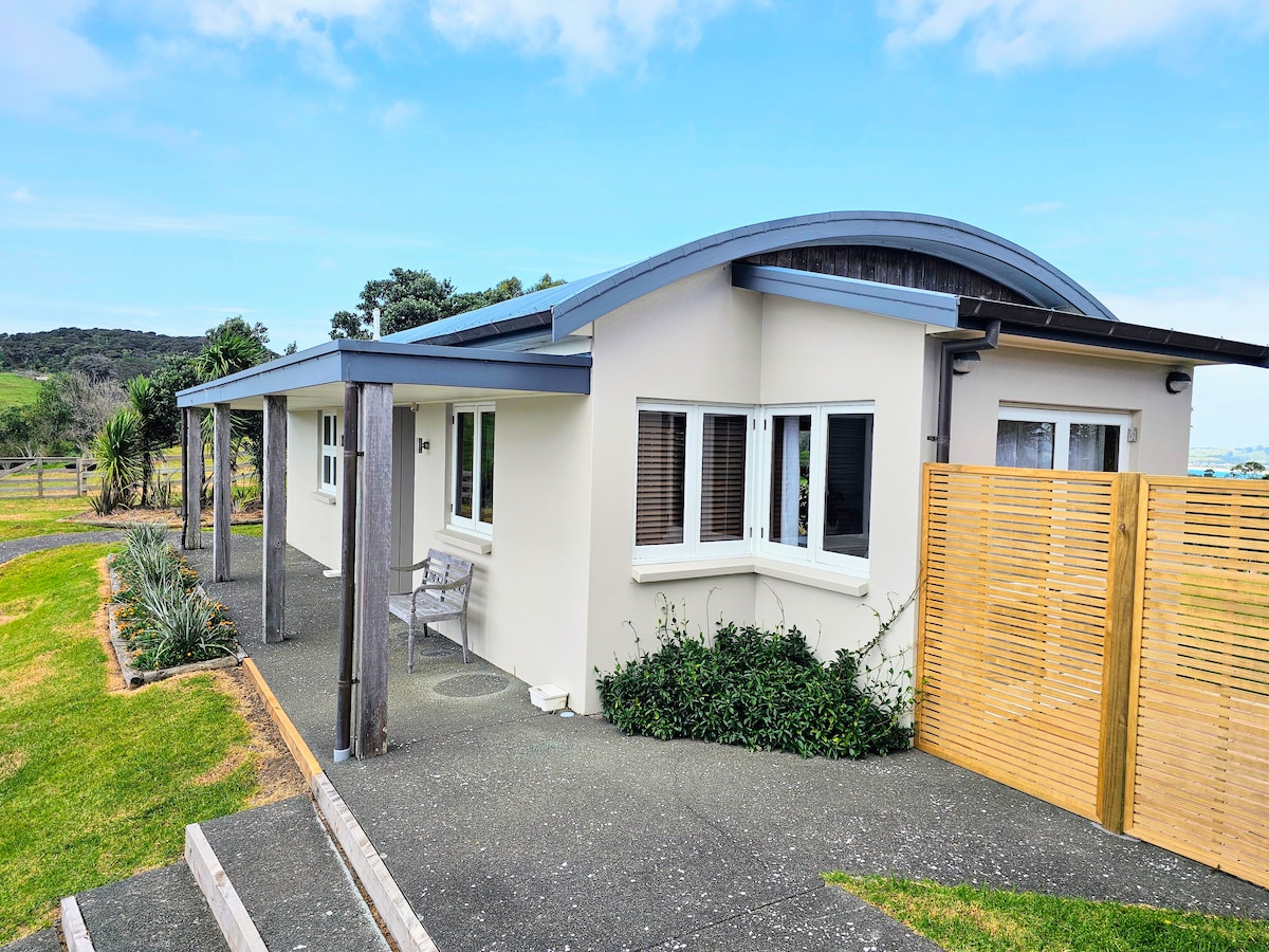Ian og jeg ønsker deg velkommen til en smak av livet på landet og landlig støy, en times kjøretur fra Auckland City. Sjappa tilbyr fredelig utsikt over landskapet og vannet, pluss sporadiske besøk fra ville hjort og påfugl. Svaler som bygger rede på verandaen i tilfelle du er redd for fugler! Det er et avslappende stoppested på reisene dine, eller en flukt fra livets mas. Frittstående med garasje mellom det og hovedhuset. Vi setter gjerne sammen et deilig fat og vin, send en melding separat for priser.
