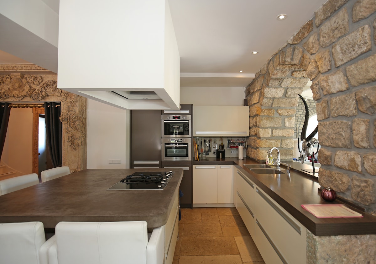 Denne romslige gårdsbygningen fra 1800-tallet er et unikt tilfluktssted fullt av sjel og karakter. Huset er innredet i en avslappet, bohemsk estetikk, hvor vintage møter jordnær komfort. Det er fem soverom, hvert inspirert av tidløse arketypier. Disse symbolske navnene gir personlighet til alle rom. Det er det perfekte stedet for familier, venner eller team som ønsker å få kontakt, enten det er for en feiring, en landlig ferie, et møte eller et teambuilding-opphold.