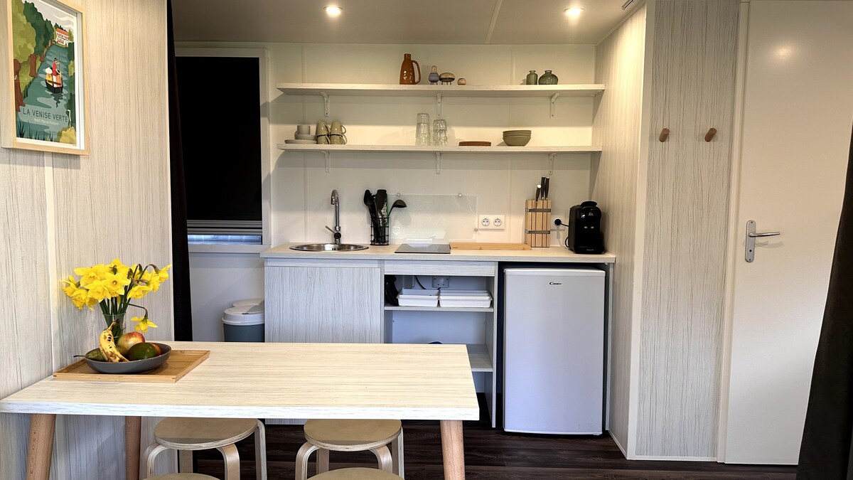 Kom deg vekk fra hverdagen og bestill vårt luksuriøse safaritelt nå! Safariteltet har én dobbeltseng, en køyeseng og en seng, et fullt utstyrt kjøkken, en spiseplass og et bad med regndusj. En overbygd terrasse med utsikt over polderen. Teltet er nettopp plassert, det er ingen fin plen ennå. Derfor tilbyr vi teltet til en pris på 115 euro i stedet for 125 euro per natt. Mulighet for å bestille et BOBLEBAD!