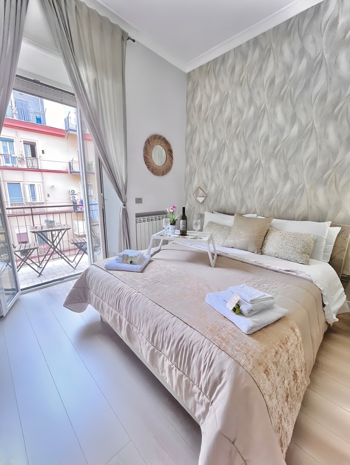 Enjoy a unique experience in the Magnificent Suite with Balcony View Vesuvius+complimentary breakfast and wine!With this accommodation in the center of Naples, your family will be close to everything!Mazzocchi's strategic location in the city center offers easy access to major attractions,transportation,and services.The house is comfortable and bright,with 4 beds,a equipped kitchen,air conditioning/heating,a washing machine,elevator. Free street parking and a H24 secured garage.Transfers/Tours