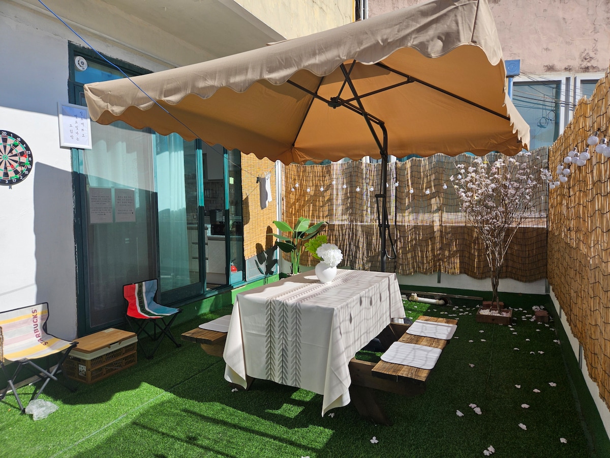 Hei. Hyggelig. Zaramok Pension er et pensjonat som har blitt nøye ombygd fra huset, hvor faren min bodde som barn. Rommet består av tre rom, ett bad og en stue, og det er forberedt for utendørs grill selv i regnfulle forhold, med en stor parkeringsplass, plen og regnfull dag. Det er en kjele som du kan bruke til måltider. Gi meg beskjed på forhånd hvis du vil bruke den. Vi vil forberede det for deg å bruke komfortabelt. Hele bygningen er delt inn i to seksjoner, som kan brukes separat og uavhengig gjennom midtre chassis. Litt langt fra sentrum kan du tilbringe en rolig og fredelig tid med familien din, kolleger og venner. Det ligger 10 minutter med bil fra Jukdo Beach, et stort turistmål, og 10 minutter fra Jumunjin Fish Market, så det ser ikke ut til å være et stort problem med tanke på tidsplanen eller lager opp på nødvendige elementer. Hvis du har spørsmål eller bekymringer, er du velkommen til å kontakte oss.