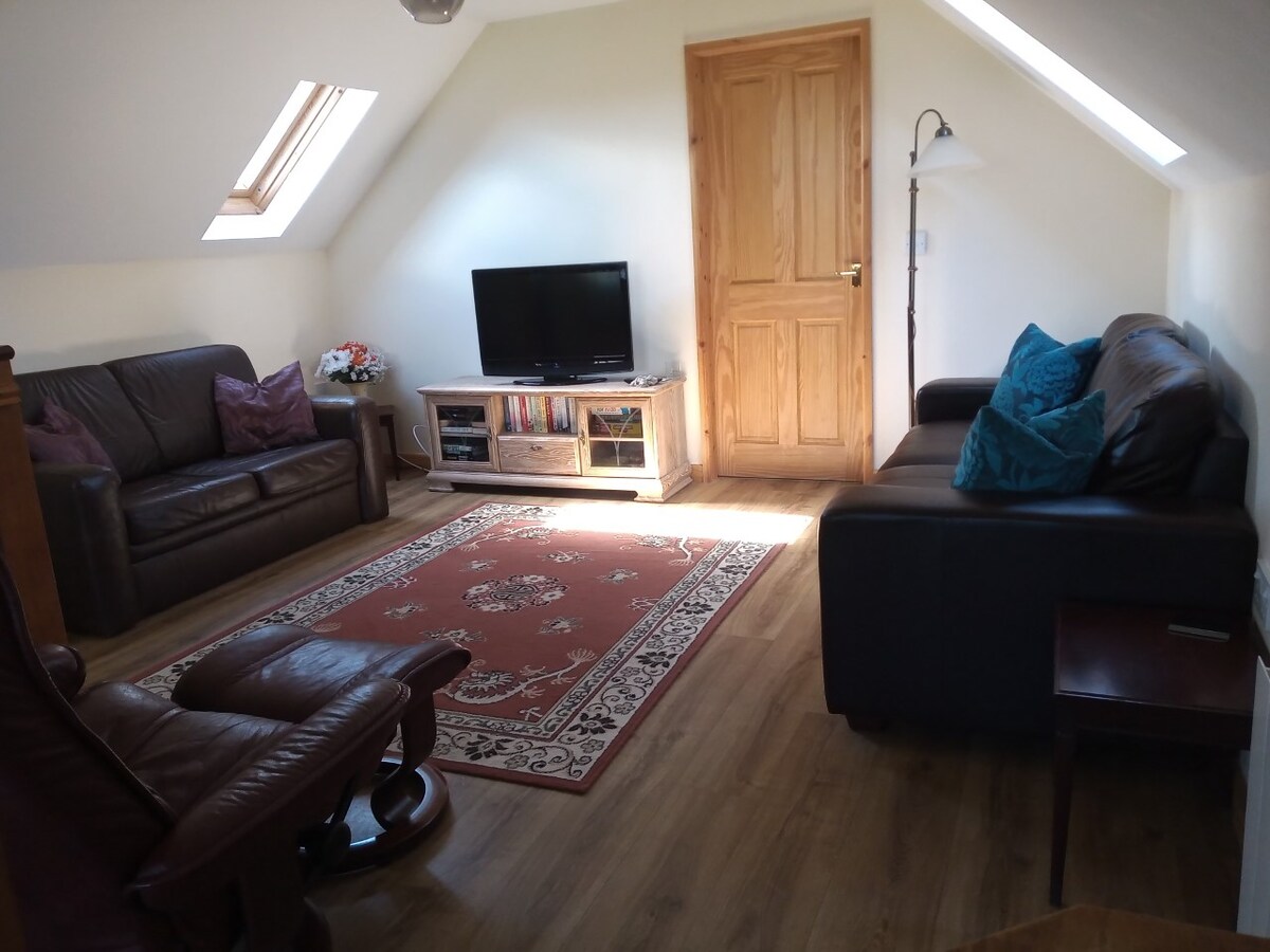 Ligger øverst på en privat 1 km kjøretur* og omgitt av åkre ligger vår kjærlig renoverte låve med tre soverom i to plan. Omgivelsene er stille, pittoreske og rolige.** Moderne åpen kjøkkenløsning/spisestue og åpen stue med peis. Trådløst nettverk og smart-TV-er. Boblebad og sitteplasser ute, med grill. *NB. Tilgangssporet er kanskje ikke egnet for kjøretøy med lav profil. ** NB. INGEN UTDRIKKINGSLAG ELLER FESTER TILLATT. DU BLIR BEDT OM Å FORLATE STEDET OM DU IKKE OVERHOLDER REGLERNE OG RESPEKTERER STILLETIDEN.