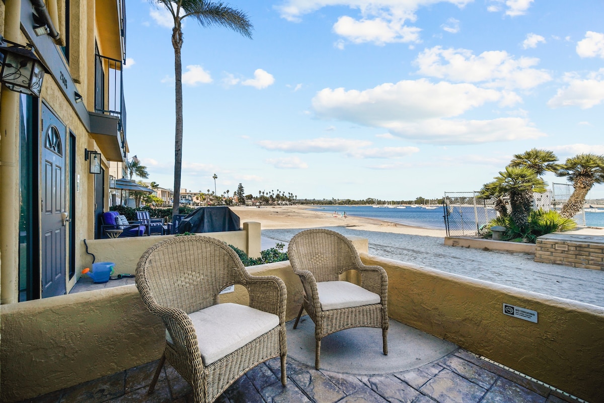En gang i livet Mulighet til å bo i en ombygd luksuriøs tidligere Home of NFL Hall of Fame Quarterback. En av svært få nylig airconditionerte 3 sengs/2 bad privat inngjerdet strandleilighet med fantastisk utsikt over Mission Beach/Mission Channel og Ocean Beach som ligger på sørspissen av misjonsstranden. Dette oppgraderte hjemmet har det største terrassedekket i hele Mission Beach som har gangavstand til San Diegos berømte Mission Boardwalk og alle aktivitetene på stranden.