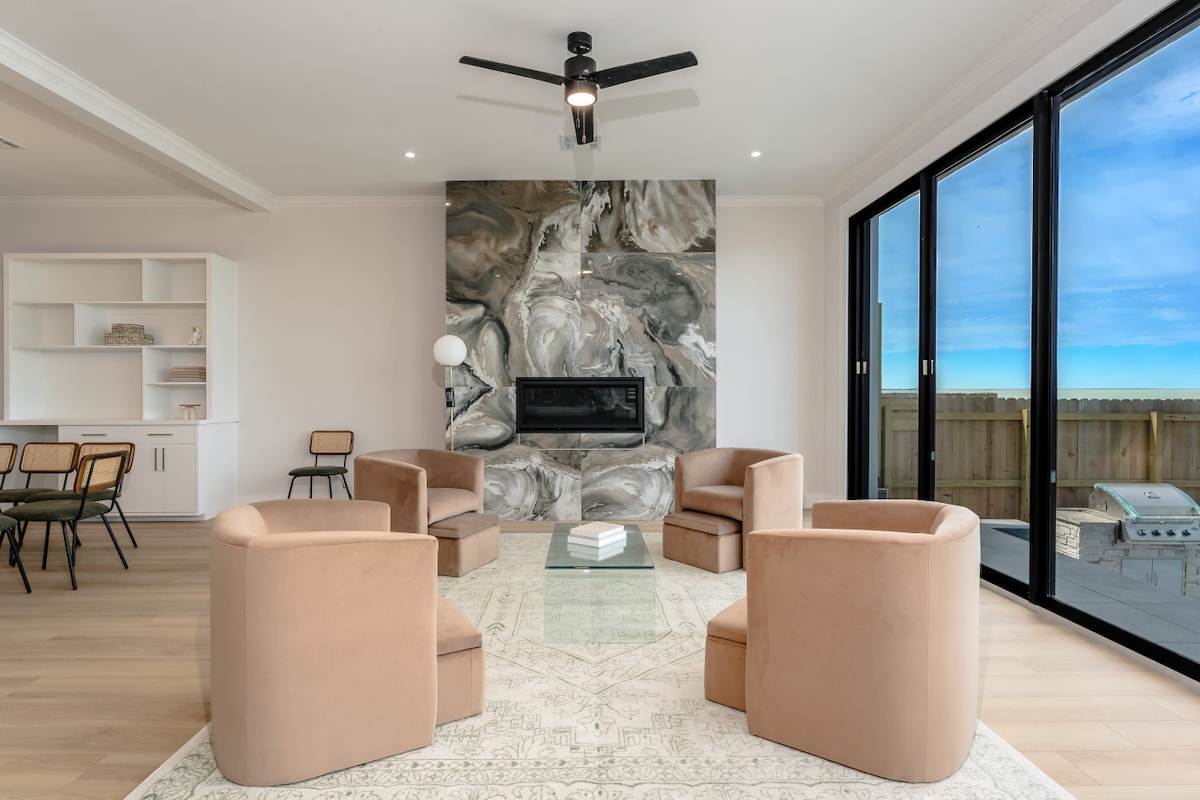 Velkommen til ditt perfekte private hjem på South Padre Island! Vårt splitter nye, moderne designede strandhus ligger bare et kvartal unna stranden/bukten, og tilbyr det ultimate luksuslivet for øyferien din. Dette fantastiske hjemmet har tre soverom og tre bad i full størrelse, noe som gir rikelig plass til opptil ni gjester. Jacuzzi avbildet på gårdsplassen ER IKKE tilgjengelig for gjester. Ikke kjæledyrvennlig på grunn av eierens alvorlige allergi.