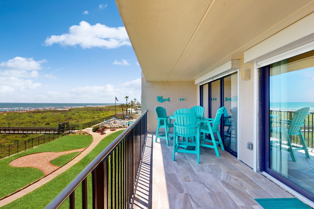 Amazing beach vibe the MINUTE you step inside w/floor to ceiling windows overlooking the best beach in Texas! SPACIOUS & CLEAN 2 Bedroom w/new King, Queen & Full sized beds. Living room has 2 full size sofas. New smart tvs, high speed wifi & your own washer/dryer. Meals are easy in fully equipped kitchen. 2 pools, 2 hot tubs & 4 gas grills. Private 75 yard walkway to beach w/wagon, cooler, beach towels, chairs & surf boards. Sundeck, fitness center, tennis courts, gated parking. Security onsite.