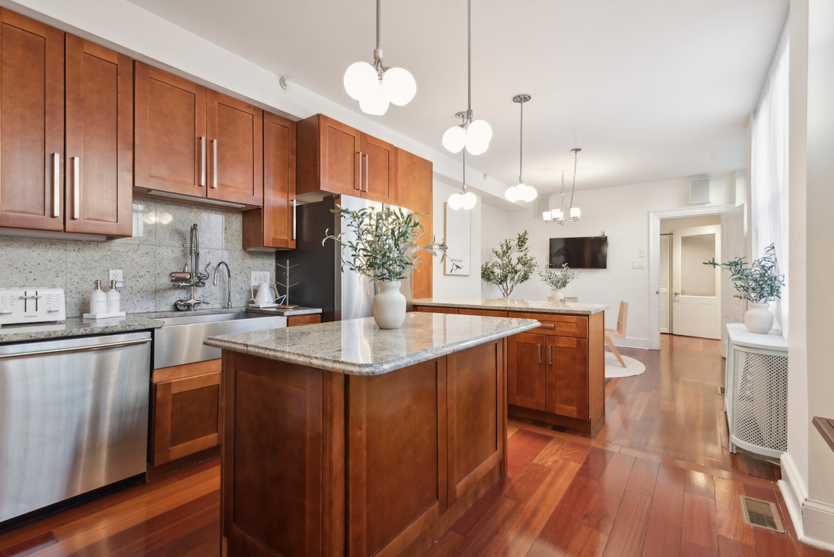 🌟 Et pålitelig, topprangert opphold for gjester som verdsetter komfort, pålitelighet og beliggenhet Bo i en nybygd, profesjonelt administrert leilighet med enkel, gratis gateparkering, innsjekking uten vert og raskt trådløst nettverk – minutter fra sentrum, museer, sykehus, UPenn og Drexel. Denne enheten har dristige designerdetaljer og et dedikert arbeidsområde, noe som gjør den ideell for jobbturer, lengre opphold eller en stilig byferie.