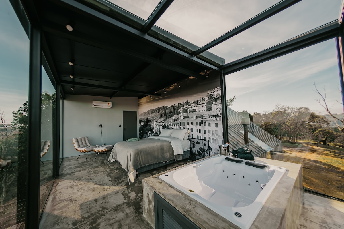 Nyhet! Nå med svømmebasseng! Unikt og eksklusivt prosjekt, bygget på det høyeste punktet av eiendommen, hvor vi har den bredeste og vakreste utsikten over regionen. Huset har en suite i øverste etasje med boblebad, panoramautsikt over fjellene og soloppgangen. Integrert stue og kjøkken i første etasje med bad, sovesofa og overdekket terrasse. Navnet er inspirert av byen Asolo, som ligger i Nord-Italia, nær Monte Grappa, et stort og viktig fjell i regionen.
