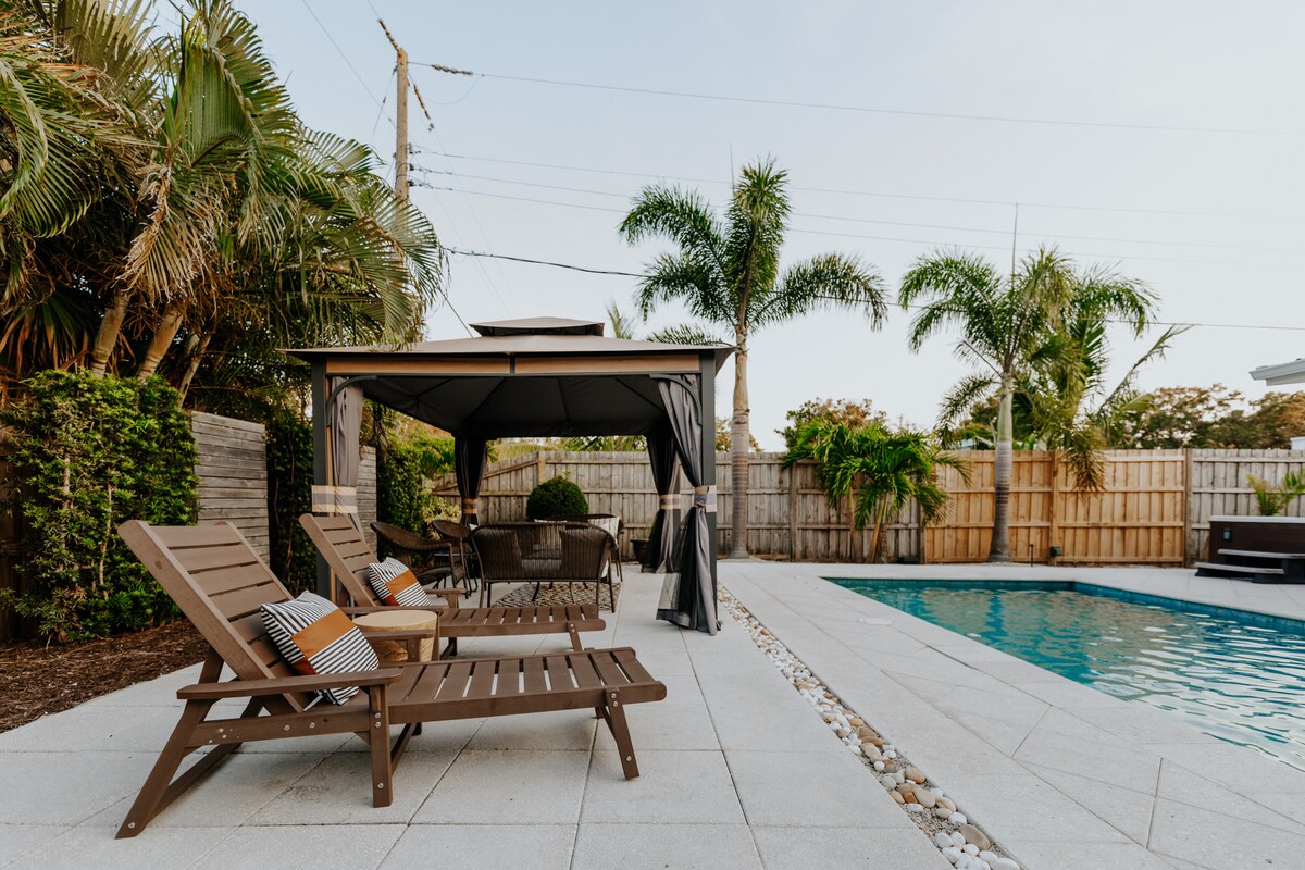 Velkommen til The Palmieri - den ideelle familieferiedestinasjonen i Sarasota! Få minutter fra DT, Siesta & Lido-stranden, har vårt vakkert innredede hjem en utrolig bakgård med oppvarmet basseng, boblebad, bålplass, lekeland og en skyggefull lounge. Romslig og åpen inne, med et fullt utstyrt kjøkken, og alle de koselige følelsene hjemme. Den ferdige garasjen huser strandutstyr for din bekvemmelighet, og gjennomtenkte detaljer kombinerer komfort og luksus for en uforglemmelig opplevelse.