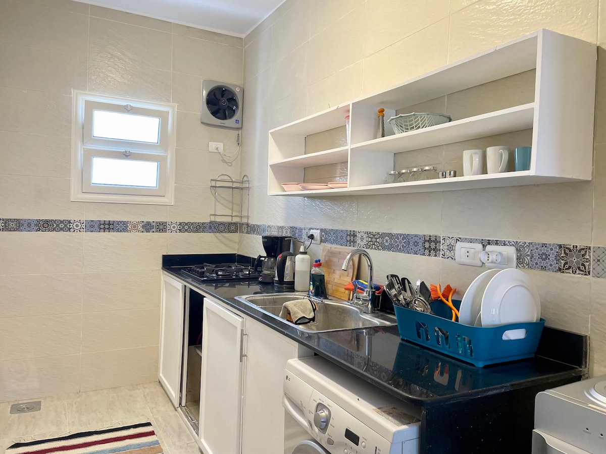 Dette stilige stedet å bo er perfekt for gruppeturer på maksimalt tre personer, kjæledyrvennlig. Enheten er fullt møblert og lastet med alle high-end apparater. Enheten ligger i Blue Hole Plaza Compound i Mashraba veldig nær Lagona Beach, Beach Walkway og 20 minutters gange fra shoppingdistriktet. I nærheten er også banker, supermarked, vaskeri og medisinske sykehus i området 3 minutter fra enheten. Enheten er i det rolige nabolaget Mashraba.