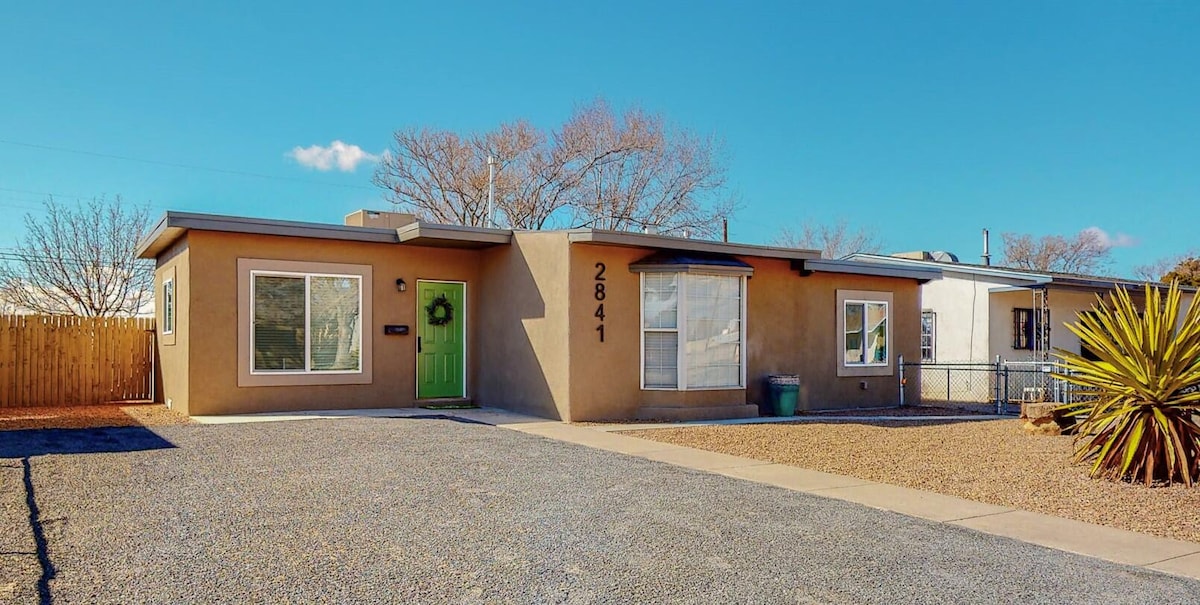 Velkommen til vårt romslige hus med tre soverom, to bad og en koselig casita! Dette vakre hjemmet er perfekt for familier og vennegjenger som ønsker et komfortabelt og avslappende opphold. Når du er klar til å slappe av, kan du gå ut i den vakre bakgården, hvor du finner et boblebad, perfekt for å slappe av mens du ser på Sandia-fjellene. Casitaen er det perfekte stedet for gjester som ønsker mer privatliv. Vi ser frem til å være vertskap for deg og bidra til å skape uforglemmelige minner i Albuquerque!