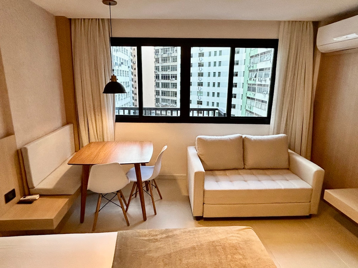 Perfekt sted å slappe av, rolig, stilig, noen kvartaler fra to av de vakreste strendene i verden - Copacabana og Ipanema. Leilighet med soverom, kjøkken, stue, bad og balkong med total privatliv. Leiligheten har svømmebasseng, treningsstudio, badstue, vaskeri til en rimelig pris (OMO selvbetjent vaskeri) og et selvbetjent minimarked.