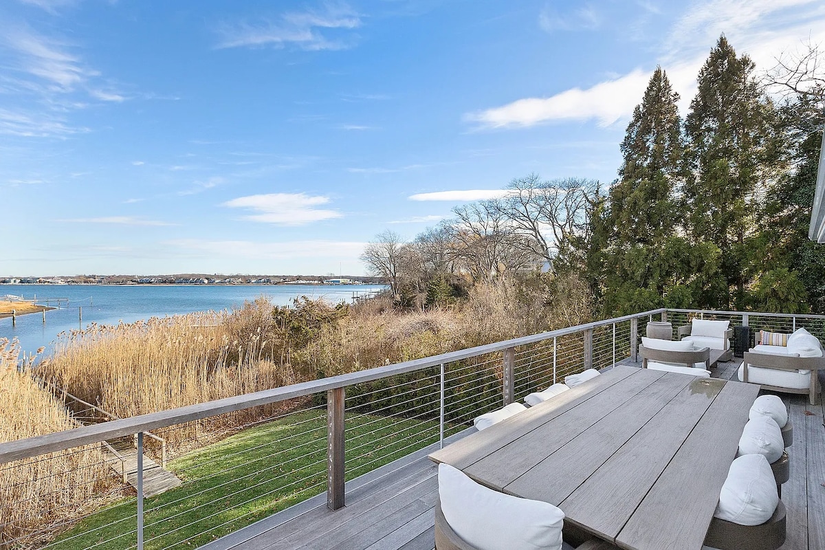 Velkommen til The Swan House 🦢🏡, et fredelig designerferiested ved Bellport Bay. Se svanene gli forbi, nyt fantastiske solnedganger og gå rett ut på vannet fra bakgården din. Slapp av på den romslige terrassen, fyr opp grillen eller ta en kort kjøretur til Smith Point Beach. Innvendig skaper en lys, åpen planløsning med utvalgte møbler en rolig kystatmosfære – et fredelig sted ved vannet bare 90 minutter fra New York City.