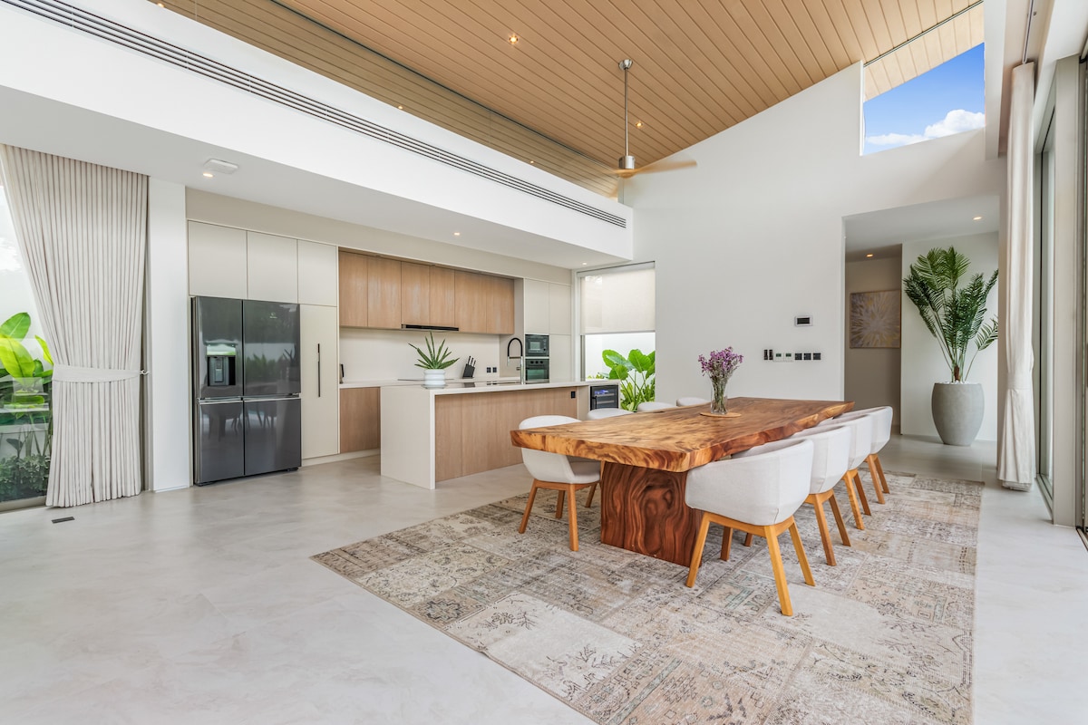 Villa Lumina er en moderne, smart villa med fire soverom og fem bad, designet for komfort og avslapning. Med høye tak på 6 meter, lys åpen planløsning og sømløs flyt mellom innendørs og utendørs, er det ideelt for familier eller grupper. Nyt et privat 12 meters basseng med to boblebad, utsikt over frodige hager og elegante soverom med eget bad. Daglig rengjøring er inkludert, og villaen ligger bare ti minutter fra Bangtao og Layan-strendene, Boat Avenue-spisesteder og Laguna Golf.