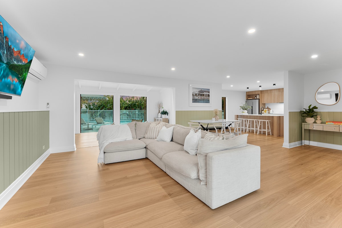 Entire floor apartment with exclusive lift access, and private foyer. Great size shared pool. A Double car space perfect if you want to bring your Boat. 3 Bedrooms & 2.5 bathrooms. Main bedroom has A/C the other 2 bedrooms ceiling fans. Fully self contained apartment all kitchen facilities, towels, linen provided. Baskin & robins, Restaurants, Cafés, Pizza place, Hair salon, boat ramp etc 5m from your front door.