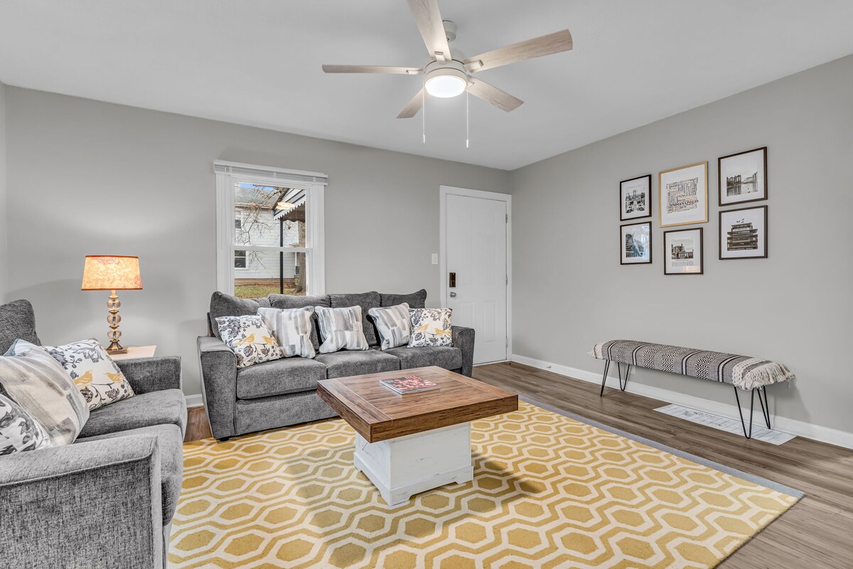 Koselig hjem med to soverom og ett bad i Fountain Square-nabolaget i Indianapolis. Dette huset har et soverom med en kingsize-seng, et soverom med en queensize-seng og en sovesofa i stuen. Gratis internettilgang, TV med Netflix og komplett kjøkken. Bare 1/2 mile fra de anerkjente restaurantene og barene i Fountain Square. 2 miles eller mindre til sentrum av Indianapolis attraksjoner, inkludert Lucas Oil Stadium, Bankers Life Fieldhouse, konferansesenteret osv. Gratis gateparkering.