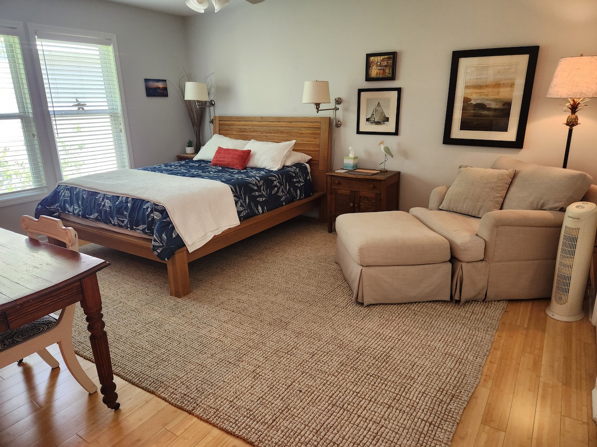 Kom og bo i vår fredelige gjestesuite hvor du kan spasere til den nydelige stranden på få minutter! Det er også rikelig med gratis parkering her! Suiten ligger bare en kilometer fra nærmeste tilgang til stranden, samt dagligvarebutikker, restauranter, kaféer, iskrembutikker, barer og parker. Det nydelige Southport ligger kun et kvarter unna! Nyt en dag på stranden, og kom deg deretter og skylle deg i utendørsdusjen (med varmt og kaldt vann). Grill et måltid og nyt det i det rolige gjesteområdet ute. Den avslappende strandferien din venter!