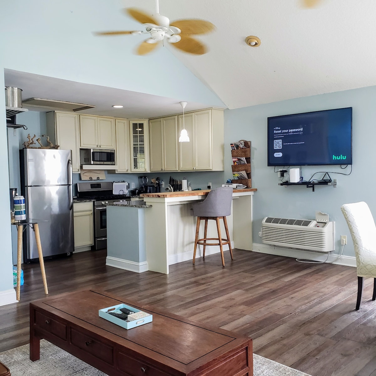 Velkommen til den nyoppussede Pop's Garage! Hvis du har bodd hos oss før, vil du elske oppgraderingene av kjøkkenet, badet og de nye gulvene overalt. I tillegg har vi nå en ny kingsize-seng i memory foam og en sovesofa for å ta imot grupper på fire personer. Det kjæledyrvennlige stedet har et privat og sikkert inngjerdet område, slik at hunden din kan slappe av og utforske. Oppdag den perfekte balansen mellom komfort og bekvemmelighet i denne unike ferieboligen