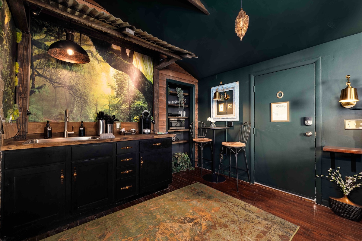 Tapt i tid, i enden av en lang glemt skogssti, hvor flekkete sollys skisserer trær, mose og stein. Nyt den luksuriøse rikdommen av sateng, fløyel, lysekroner og stearinlys. Hvis du ønsker å komme deg bort, vil vi gjerne dele veien til denne skjulte destinasjonen i historiske Riverside. Denne fortryllende skogsdestinasjonen er utstyrt for jobbreiser, datekvelder, soloferier eller lengre ferier, og er riktig for deg.