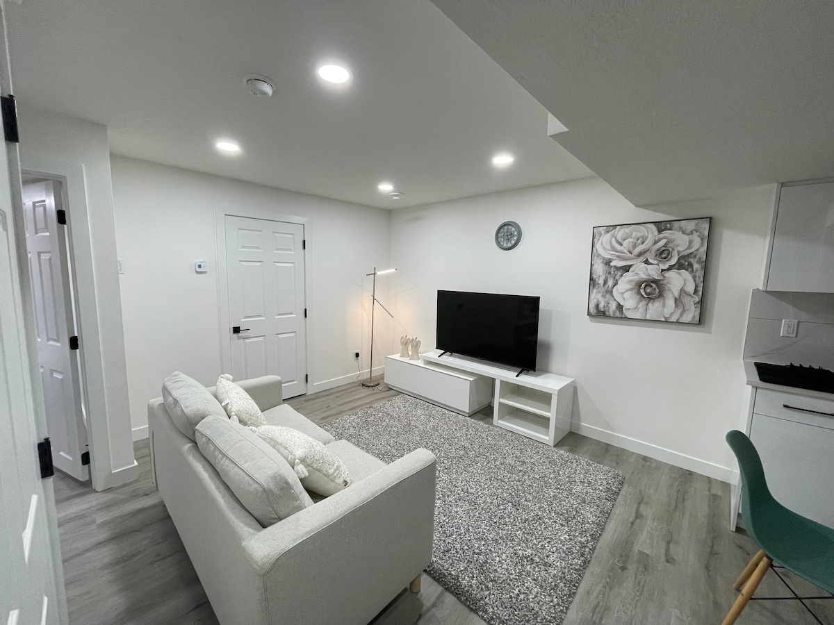 * Kun hovedinngangen er delt* Velkommen til ferieboligen din i Windermere, Edmontons mest ettertraktede og sikreste område! Vår romslige kjellersuite er perfekt for arbeid eller fritid, og har en koselig queen-seng, sovesofa, fullt bad, stue og kjøkkenkrok med kjøleskap og kokeplate. Hold deg avkjølt om sommeren med klimaanlegg, og nyt høyhastighets trådløst nettverk og strømming på smart-TV. Nær parker og spisesteder. Opplev komfort i et av byens beste nabolag.