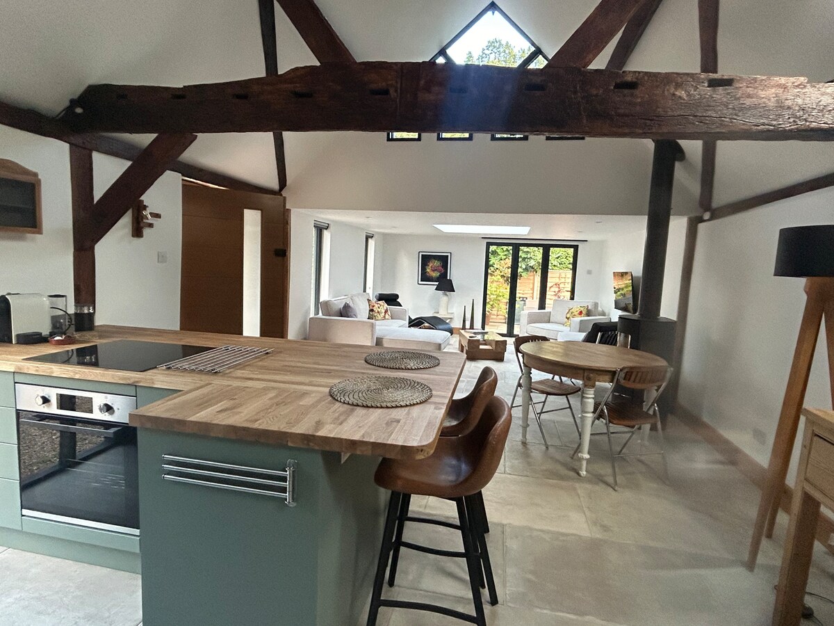 En oppdatert hytte fra det 19. århundre med mange bjelker og et hvelvet tak i hovedsoverommet. Ideelt plassert, det er bare ett minutts gange til lokale butikker og restauranter. Legoland og Windsor ligger bare 30 minutter unna med bil. Et tredje, koselig, separat soverom med to enkeltsenger og toalett er også tilgjengelig (på forespørsel) i en ombygd bygning i hagen. Med vedovnen, komfortable senger og terrengparkering er dette den perfekte ferien! Hunder er velkomne (gebyr på 30 pund).