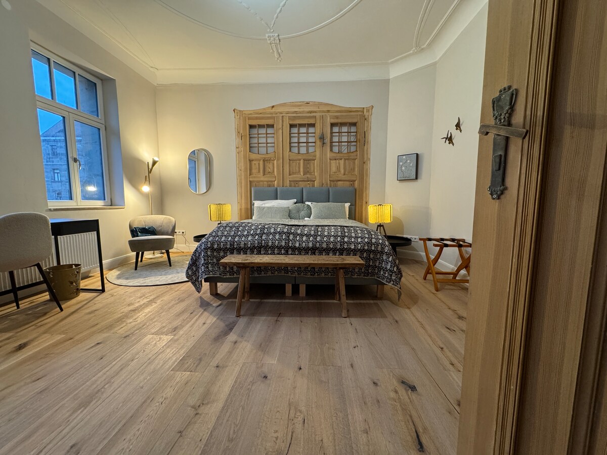 Nyt en unik boopplevelse i denne leiligheten med sentral beliggenhet. Denne vakre jugendeleiligheten ligger i andre etasje i den sentralt beliggende, oppførte EngelHaus. Gangavstand til Fürth sentrum og Wiesengrund. To minutters gange til Fürther sentralstasjon og dermed på 10-15 minutter i Nürnberg og Erlangen. Den perfekte leiligheten for oppholdet ditt. Praktisk plassert for utflukter i området, for å jobbe eller besøke familie. Vi ser frem til å se deg snart!