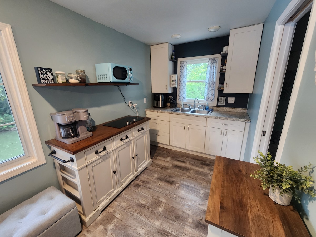 Det ultimate minihjemmet du har ventet på. Dette 500 kvadratmeter store vognhuset ble bygget i 1906! Kjærlig og omhyggelig kuratert for et perfekt romantisk opphold. Du er en kort kjøretur fra alltid morsomme Fast Eddie's Bonair eller den nydelige utsikten over elven. Tilbring dagen med å gå på Great River Road eller prøve lokale butikker og restauranter. Vil du bli inne? Stedet ditt har alt du trenger for et koselig måltid. Sett på en plate og slapp av i det private boblebadet.