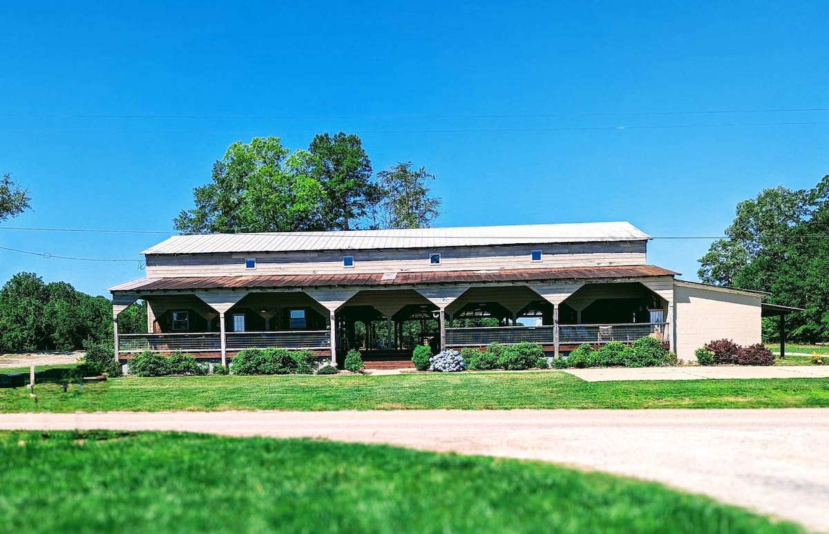 Gå inn i ditt romslige hjem, som ligger på en 100 hektar stor gård. Beundre utsikten over hagen, dammen og gården. Nyt solrommet, to queen-size soverom, stue og fullt kjøkken med mye tilbehør til matlaging og servering, og kaffe-/tekokere. Tilbring nettene ved bålet, spis ute eller se Roku-TV. ***NY FORDEL! Svøm, vad, fisk, historisk plantasje, båt, tur, PASS tilgjengelig for opptil 4 personer. 6/1 - 9/2 for svømming. Se informasjon under seksjoner: eiendommen din, tilleggsinformasjon, refunderbart depositum og regler.***