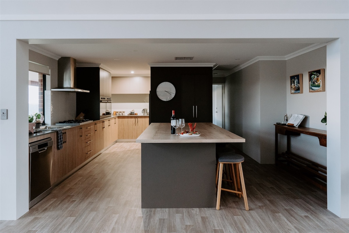 Lovely, modern, spacious, family home, located in Nunile. Centrally located to the town of Toodyay and all the amenities, including the Toodyay Hotel, cafes, bakery, restaurants, shops, antique store, markets, etc. This stylish home is the perfect location for group trips, family and friends. Only an hours drive from Perth, yet such a relaxed, country type of vibe, puts you right into holiday mood and relaxation. Amazing views of the undulating hills from the home.