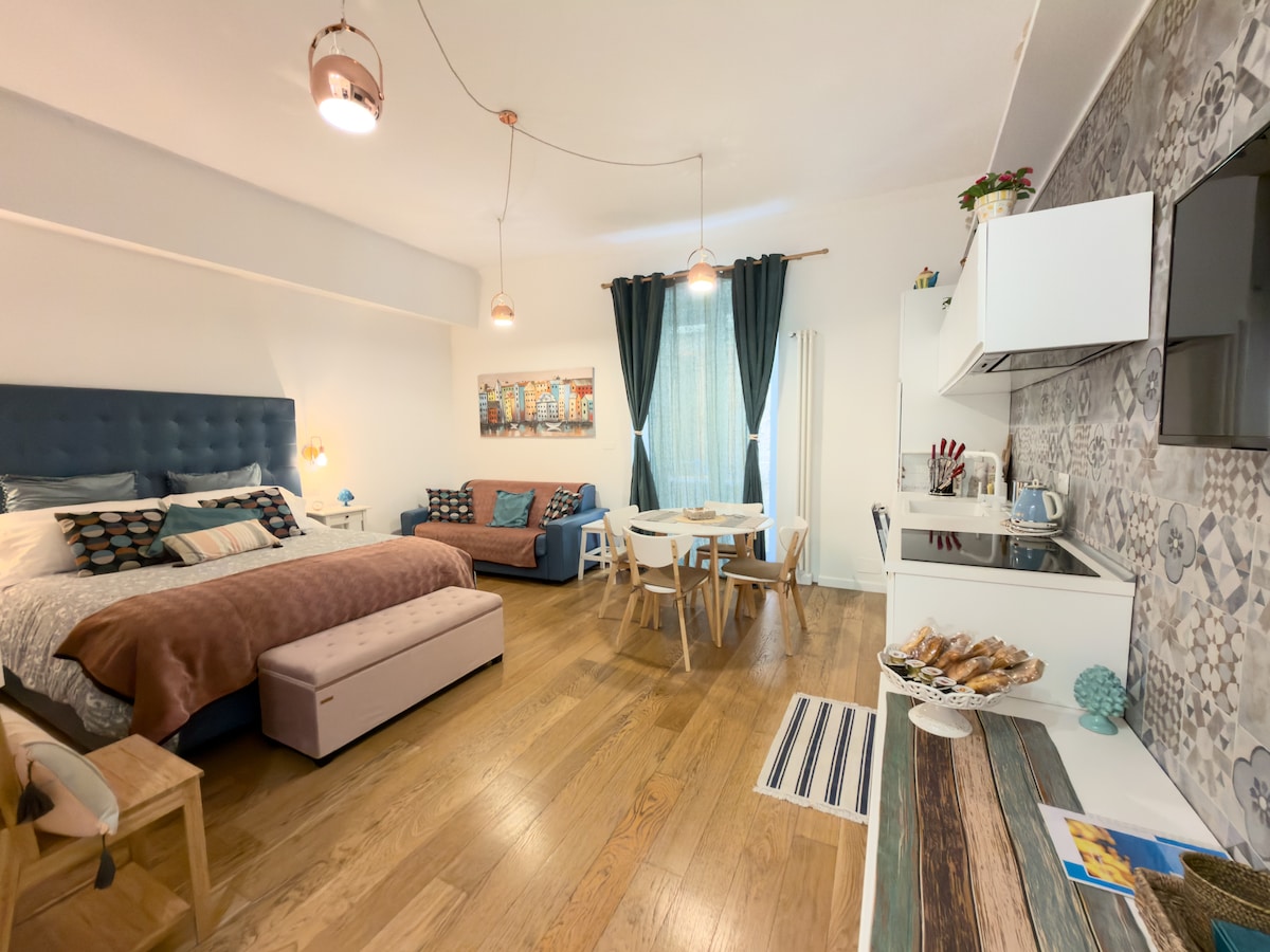 Den vakre leiligheten ble totalrenovert i 2021. Leiligheten ligger i andre etasje i en gammel bygning uten heis. Leiligheten er smakfullt møblert i middelhavsstil, og inkluderer en dobbeltseng, sitteplass, fullt utstyrt kjøkken, marmorbord og fire stoler, stor garderobe, én TV, og den er utstyrt med alle bekvemmeligheter og tjenester, oppvarming og klimaanlegg, trådløst internett. Leiligheten har utsikt over havet med fantastisk utsikt over Sorrento-halvøya.
